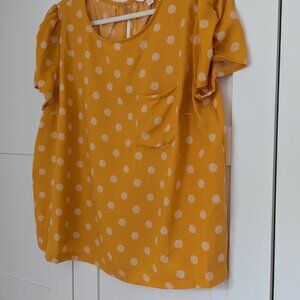 Gently worn and like new! This short-sleeve yellow polka dot blouse by Lauren Conrad, women's size XXL, adds a cheerful touch to any outfit.
