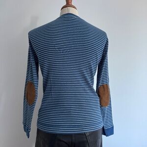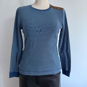 Lauren Jeans Company - Blue and White Stripes Long Sleeve Shirt - Zipper detail on one shoulder - Patchs detail on the elbow - Excellent pre-owned condition
