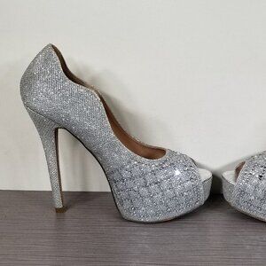 Lauren Lorraine Candy Crystal Peep Toe Pump, Silver, Womens Size 7 M