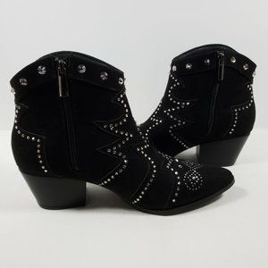 Lauren Lorraine Indiana Studded Suede Western Bootie - Black 10M