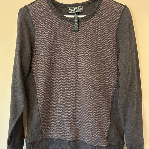 Ralph Lauren sweater, size medium, heather grey with lighter grey houndstooth pattern, excellent condition, 100% cotton
