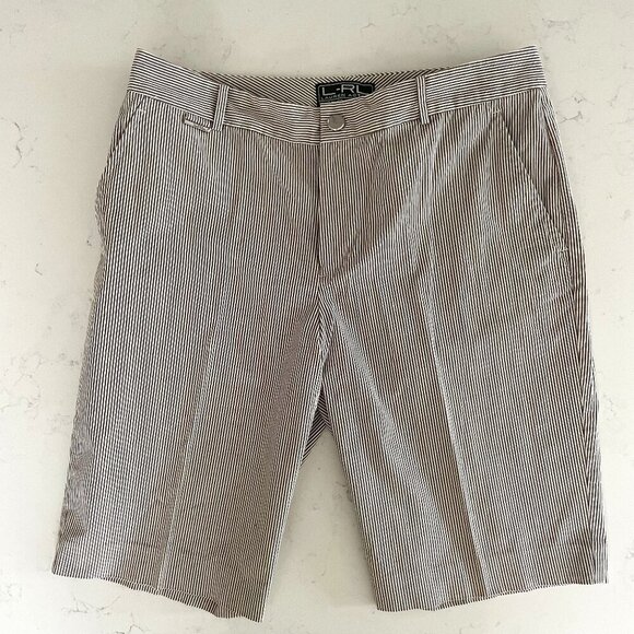 Lauren Ralph Lauren Active Striped 4 Pocket Cotton Bermuda Shorts Tan+White Sz 8