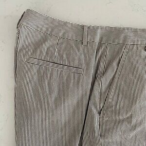 Features: pull on, zip snap & interior metal button closure, 4 pockets (2 side & 2 back), belt loops, striped, bermuda length, casual, sporty