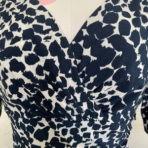 Lauren Ralph Lauren Animal Print Faux Wrap Dress Navy+White Sz 6 No Fabric Tag