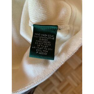 Lauren Ralph Lauren beige 100% cotton with taupe piping/trim throughout. Button up at front with two pockets (*still stitched closed*). Size S. Extra yarn. Never worn.