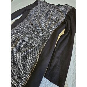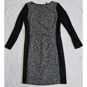 Lauren Ralph Lauren | Black & White Knit-Panel Long-Sleeve Dress