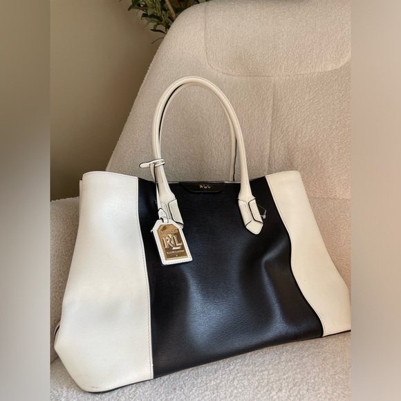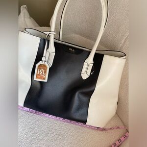 Lauren Ralph Lauren Black and white large leather Tote NWOT