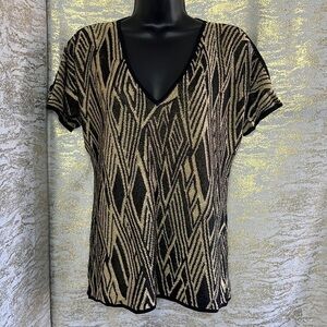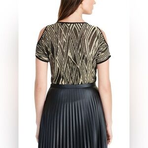 Lauren Ralph Lauren Black/Gold Geometric Metallic Cold Shoulder Top Size M