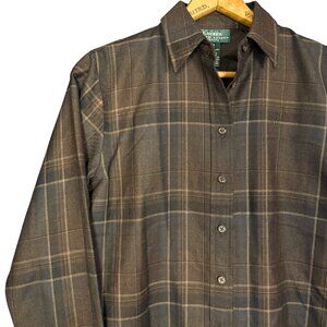 Lauren Ralph Lauren Brown Plaid Button Down Shirt Size Small