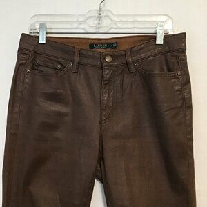 Lauren Ralph Lauren Brown Wax Coated Skinny Jeans Size 6