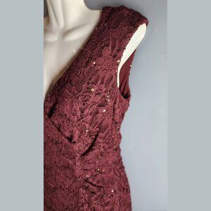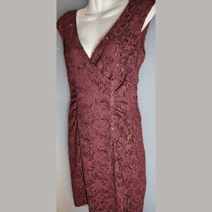 Lauren Ralph Lauren Burgundy Lace Sequin Cocktail Dress