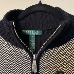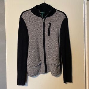 Lauren Ralph Lauren Cardigan Sweater Black White Herringbone Women's Medium