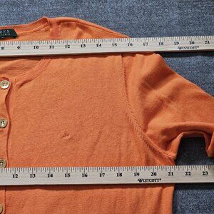 Lauren Ralph Lauren Cardigan Women L Orange Buttons LS Boho Preppy Mature Office