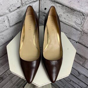 Lauren Ralph Lauren Chocolate Brown Leather Pointed Toe Stiletto Pump