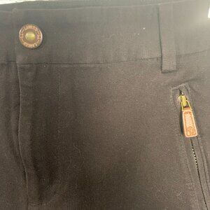 Crafted for versatility and elegance, the Lauren Ralph Lauren chocolate brown trouser pencil skirt offers a timeless addition to your wardrobe. Its knee-length cut and straight design provide a sophisticated silhouette suitable for various occasions, from business meetings to casual outings or even cocktail parties. The skirt features a comfortable mid-rise and is made from a blend of cotton and elastane, ensuring both breathability and stretch for all-day wear. Attention to detail is evident with its simple yet chic accents, including a logo leather pocket zip tabs and snap button. The skirt's solid colour and dark fabric wash make it a classic piece that pairs effortlessly with different tops and shoes. It is also machine washable, ensuring easy care and maintenance. Whether you're dressing for the office or a social event, this preppy skirt is a reliable choice that exudes style and poise.