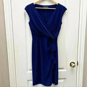 Lauren Ralph Lauren Dress Surplice Wrap Front Sleeveless Royal Blue Size 2