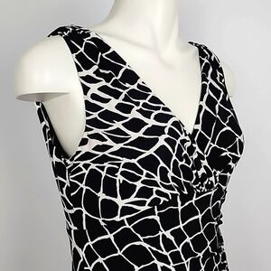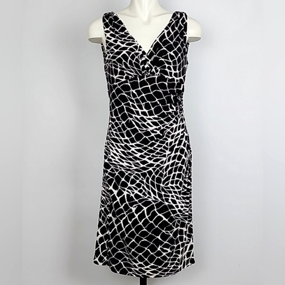 Lauren Ralph Lauren Faux Wrap Sleeveless Dress V Neckline Black White Size 8