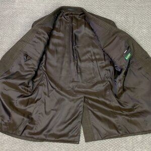 Lauren Ralph Lauren Houndstooth Blazer Sport Coat Mens 44L Brown Green Blue Wool