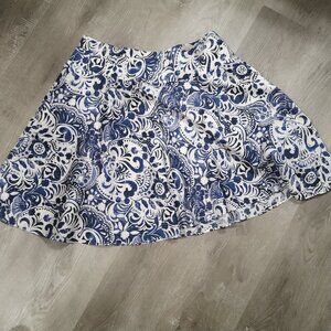 Lauren Ralph Lauren Ladies Size 14 Petite Blue & White Pattern Flared Skirt