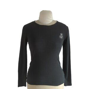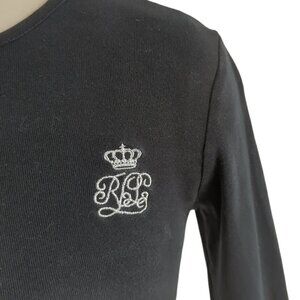 This is a black long sleeve top with a metallic silver embroidered RLL logo on the chest by Lauren Ralph Lauren.