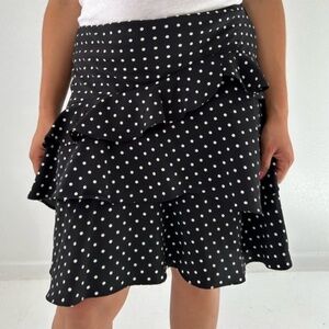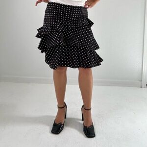 Lauren Ralph Lauren Mini Skirt Coquette Polka dot Ruffled Flowy Black White 14