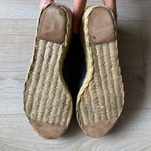 I had purchased two pairs hoping I could squeeze into them because I loved them so much but it's really a size too small for me. I was just being hopeful. Never worn at all! Peep-toe or Almond-toe Espadrille like sandals! Casual yet dressy and stylish!