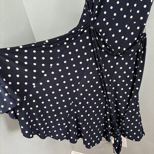 Lauren Ralph Lauren Navy and White Polka Dot Midi Dress