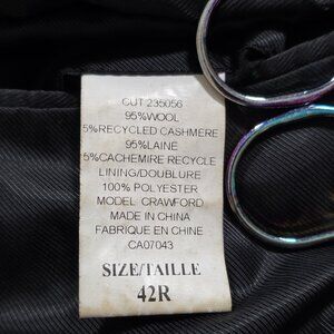NOTE: internally lining seams are coming undone in couple of spots - see photos. Also, one button is missing on right cuff.