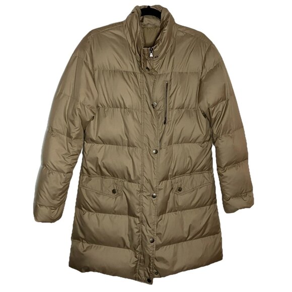 Lauren Ralph Lauren Puffer Coat Womens Tan Mid Long Full Zip Winter Down Filled