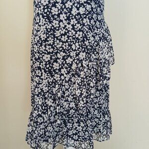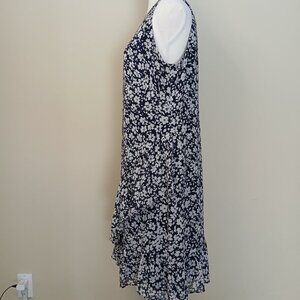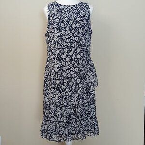 Lauren Ralph Lauren Ruffle Tiered Hem Blue & Light Gray Floral Midi Dress Sz 12