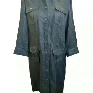 Lauren Ralph Lauren Shirt Dress Long Sleeves Button Up Midi Linen Black Size 12P