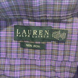 Lauren Ralph Lauren Shirt Mens 17.5 34/35 Purple Plaid Button Up Non-Iron Cotton