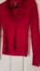 From the flirty frills at the neck to the racy red, this fine knit has got it going on!