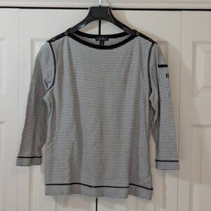 Lauren Ralph Lauren Striped Bateau-Neck Tee Black and White - Size XL