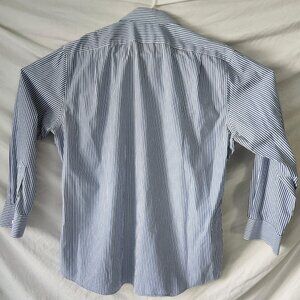 Men’s Lauren Ralph Lauren button-up dress shirt in great condition. Size 17.5 neck / 34-35 sleeves. Slim fit, white with blue stripes. Non-iron 100% cotton fabric for easy care. Great for the office or formal wear.