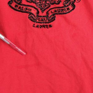 Lauren Ralph Lauren T Shirt Womens Large Red Beaded Preppy Logo Long Sleeve