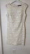 Stunning white lace dress with boat neck and sleeves to cap sleeves, knee length.
