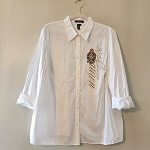 Lauren Ralph Lauren White Logo Button Down Casual Shirt Size 2X.