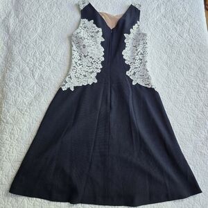 Lauren Ralph Lauren White Navy Lace Overlay Sleeveless Crepe Dress Size 4