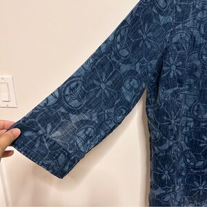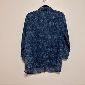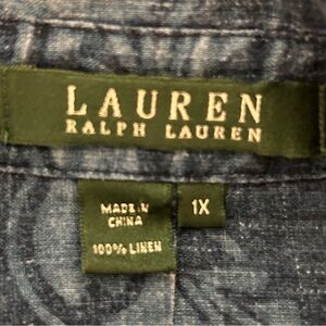 Lauren Ralph Lauren Women's 1X Blue Floral Button-Up Shirt 3/4 sleeve 100%Linen