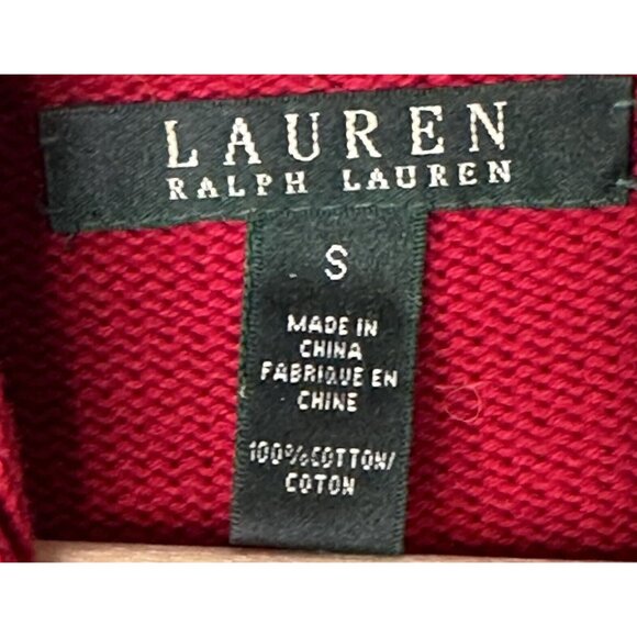 Lauren Ralph Lauren Sweater Women Small Red Shawl Collar Cotton Knit Metal Clasp
