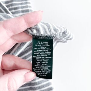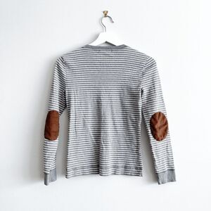 Lauren Ralph Lauren Women's Sweater Striped Faux Suede Elbow Patch Gray White Small