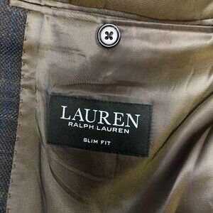Lauren Ralph Lauren Wool Blazer Sport Coat Men's 44L Brown Blue Windowpane Plaid