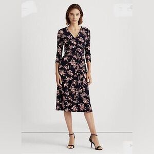 Beautiful Lauren Ralph Lauren dress in a size 16. Sleeveless style with a flowy skirt, made from a thick, stretchy material. Fully lined.