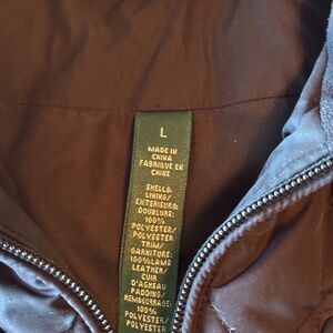 Lauren Ralph Lauren black quilted Puffer jacket, lamb leather trim Sz L