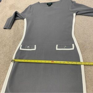 Lauren Ralph Lauren gray ivory white knit bodycon midi dress Sz 10 NWT