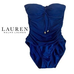 Lauren Ralph Lauren navy blue ruched one piece swimsuit Sz 8