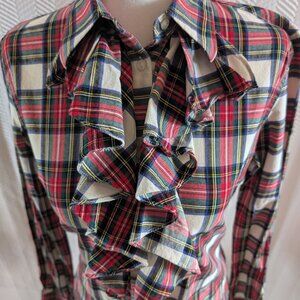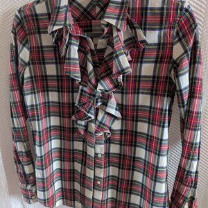 Lauren Ralph Lauren plaid ruffled button down blouse Small Academia Tartan