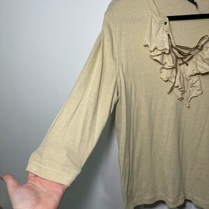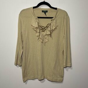 Lauren Ralph Lauren women’s Tan lace up ruffle equastrian 3/4 sleeve top in 2X