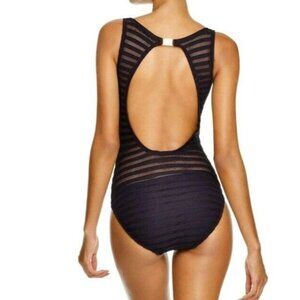 Lauren Ralph Sz 8 Lauren Swimsuit Mesh High Neck One-Piece Black Classic Preppy